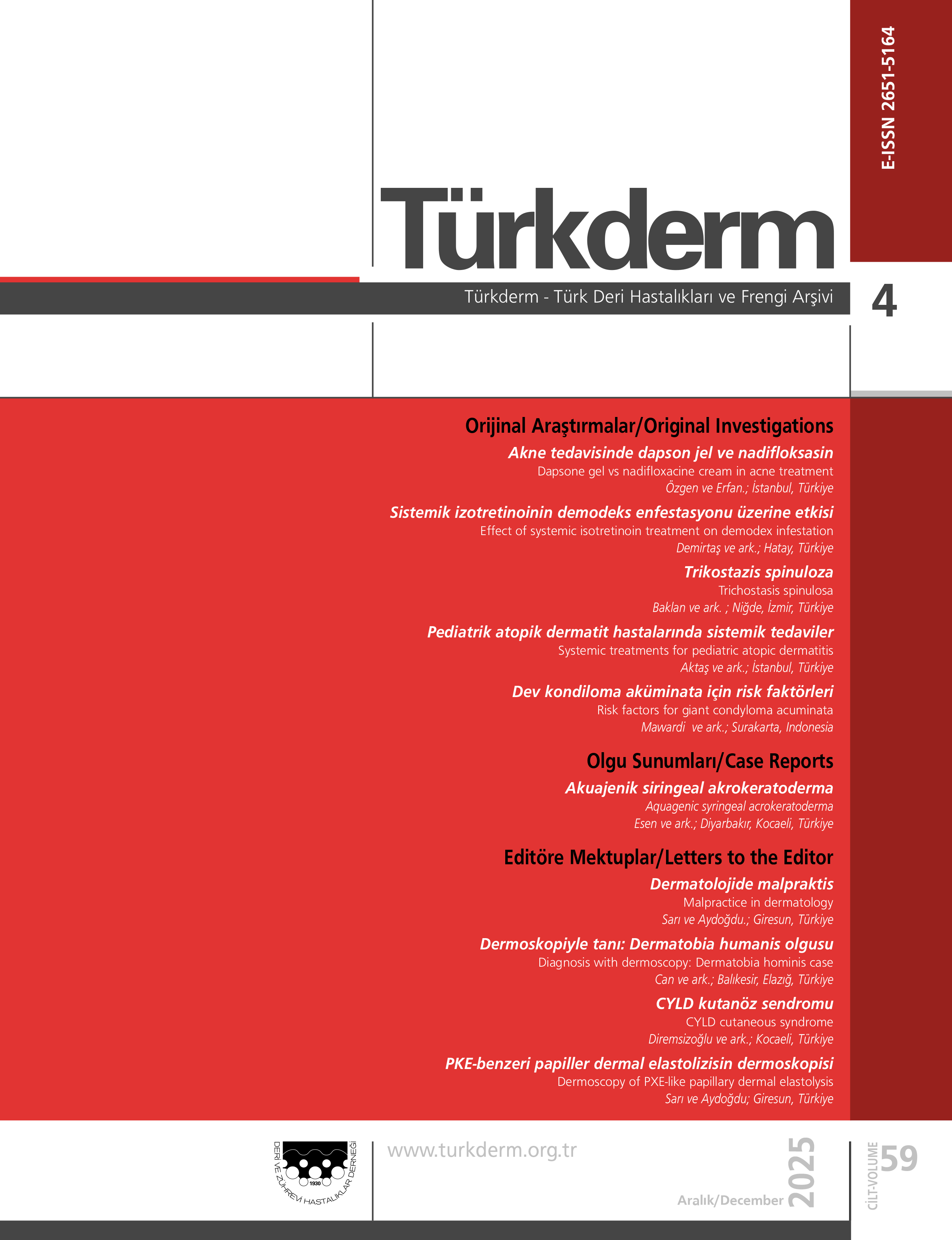 Sonuç: Hastaların başvuru sayılarının azaldığı ve sistemik tedavilere ihtiyaç duyan hastaların başvuru oranlarının arttığı saptandı. COVID-19 pandemisi ve doğal afetler gibi hastalık takibi için polikliniğe başvuruların zorlaştığı dönemlerde rozase ve benzeri kronik takip gerektiren dermatozların teledermatoloji yöntemi ile değerlendirilmesi önerilebilir.